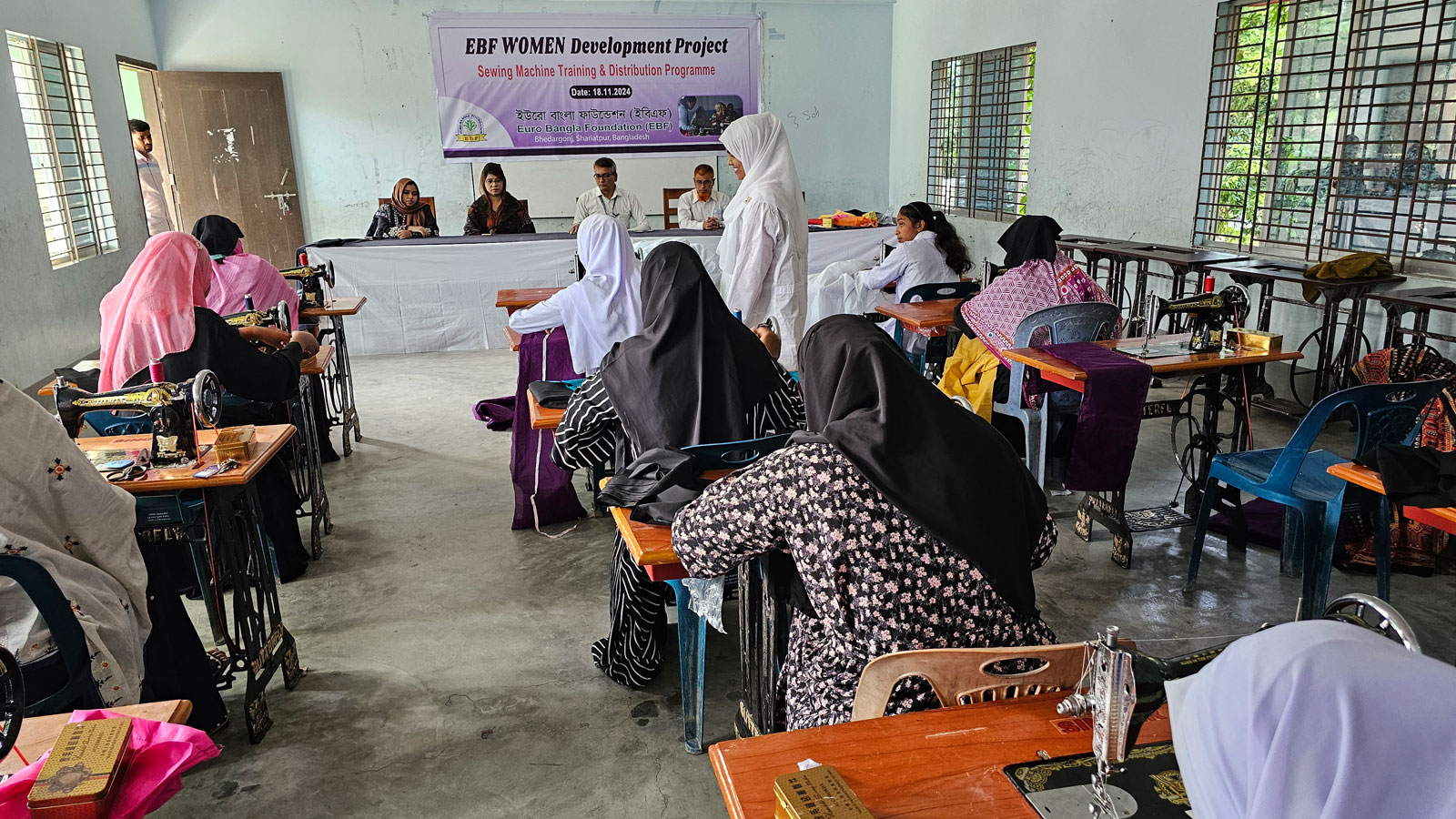 Rückblick auf das EBF-Frauenentwicklungsprogramm: Am 18. Oktober 2024 verteilte die Euro Bangla Foundation (EBF) Nähmaschinen an Frauen in Charpayatoli, Bhedorgonj, Distrikt Shariatpur, Bangladesch. Dies geschah im Rahmen ihrer laufenden Bemühungen, Frauen zu stärken und die Selbstversorgung in ländlichen Gebieten zu fördern. Diese Initiative unter dem Motto „Hilfe zur Selbsthilfe“ zielt darauf ab, Armut zu reduzieren, indem Frauen die notwendigen Werkzeuge für eine nachhaltige Lebensgrundlage bereitgestellt werden. Die Verteilung von Nähmaschinen ist ein zentraler Bestandteil der umfassenden Vision der EBF, ländliche Gemeinden zu fördern und Frauen die Möglichkeit zu geben, Fähigkeiten zu entwickeln, die es ihnen ermöglichen, ein eigenes Unternehmen zu gründen, Einkommen zu erzielen und die Lebensqualität ihrer Familien zu verbessern. Durch diese Stärkung der Frauen trägt das Programm nicht nur zum individuellen Wirtschaftswachstum bei, sondern hat auch nachhaltige Auswirkungen auf die gesamte Gemeinschaft, indem es Unabhängigkeit fördert und den Teufelskreis der Armut durchbricht.